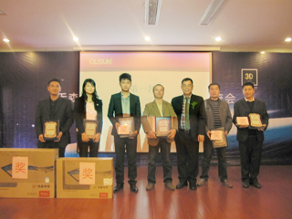 在會議中,有來自宜興、常州、盱眙、天長、沐陽等幾個區域的六位核心經銷商被評為優秀經銷商,同時還進行了抽獎活動,獎品有筆記本電腦、名牌液晶電視、數碼相機、微波爐等。最后,喬森還分別推出了家居新品和電工新品,以方便各經銷商進行營銷沖刺,沖擊年底銷量目標。